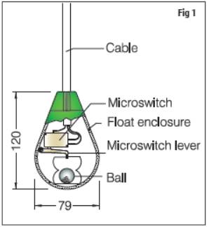 How does the switch work? It consists of a float suspended from an open ended cable. A float assembly houses microswitch alongwith a moving steel ball, which slides as float position changes. An adjustable stopper is inserted on float cable which acts as pivot. When the liquid level rises, the float moves up around the adjustable stopper (pivot), causing the steel ball to move and operate the micro switch lever to actuate.